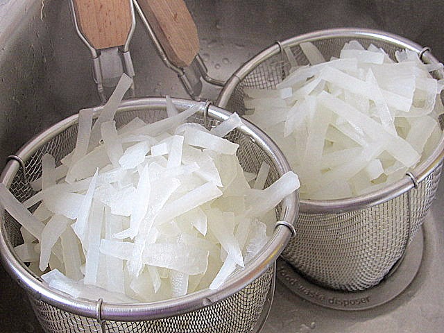 2.7 lbs. (1250 g.) (7.8 cups) Lou Bok Radish, cut into matchsticks